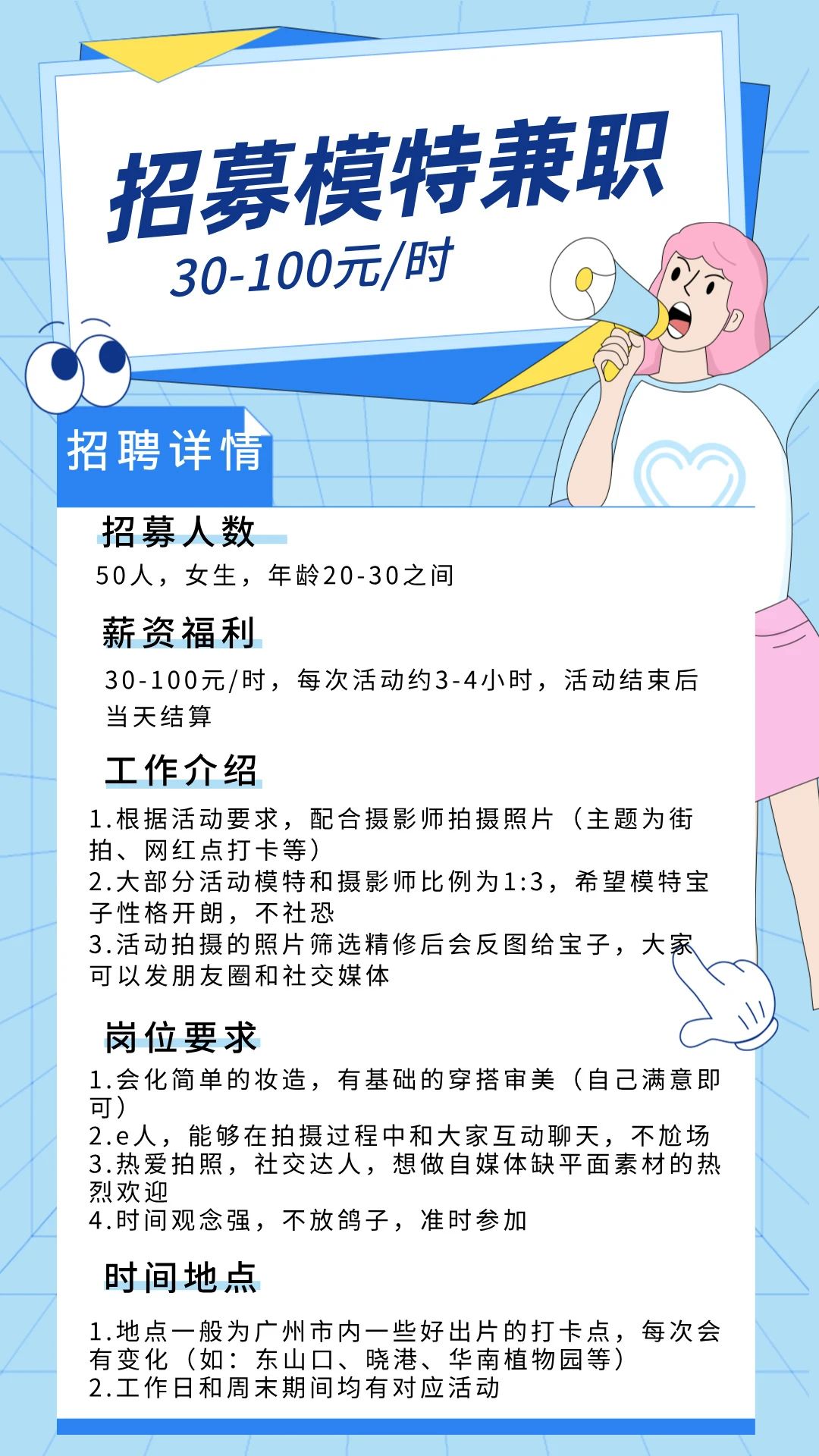 | 【日结30-100元/时】招募模特兼职,不仅赚钱,还可免费享受网红点打卡+专业摄影师+大片精修图! |
