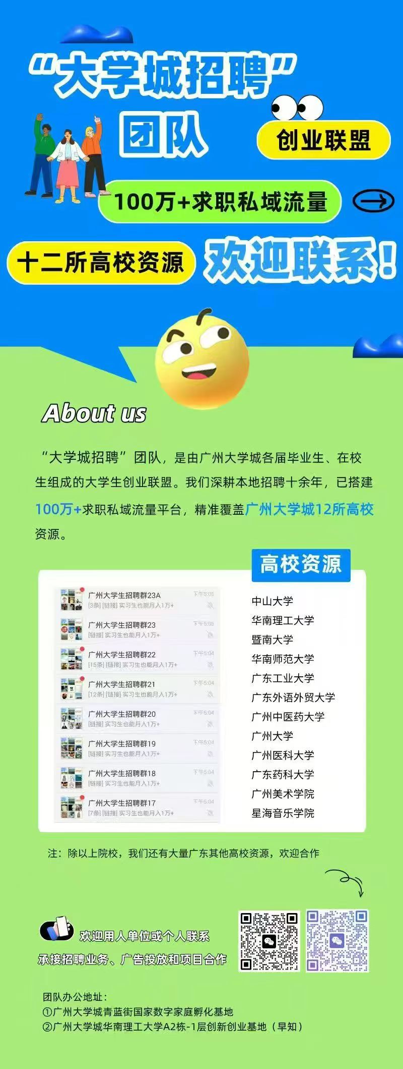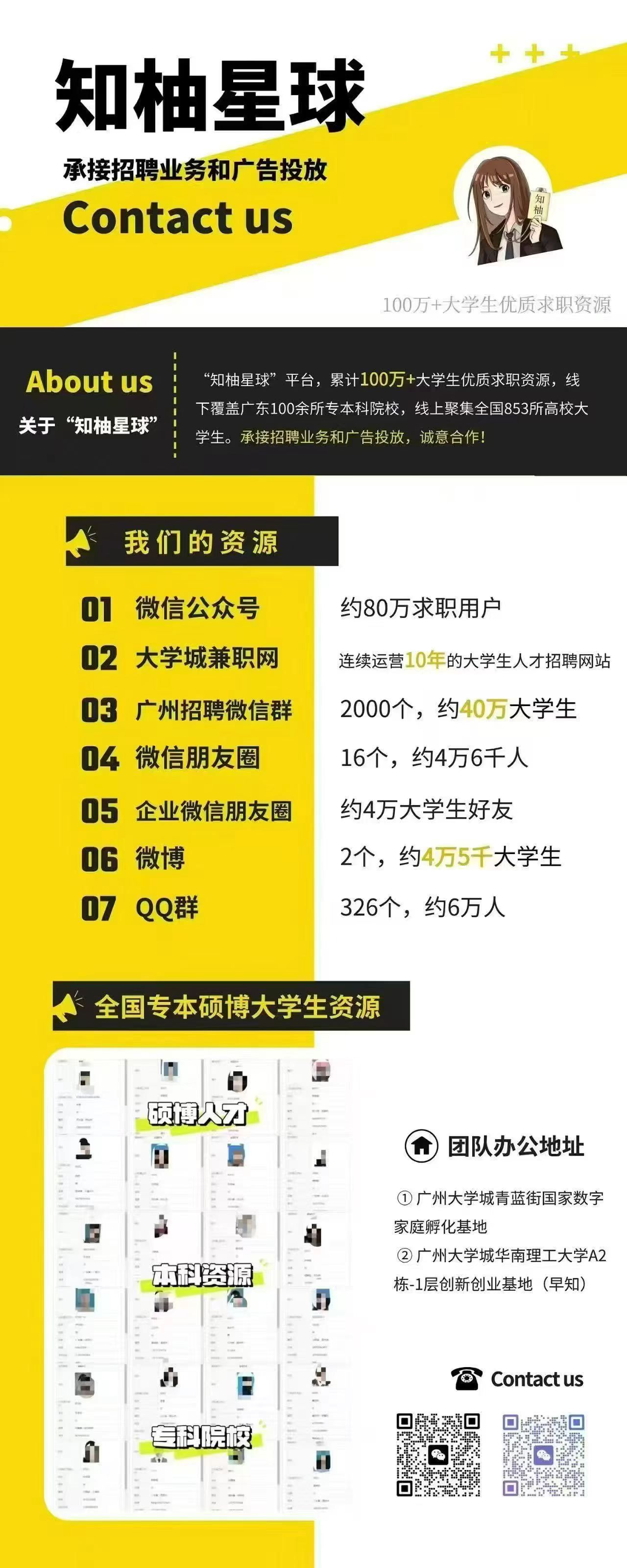 | 百万高校学生资源,定制化招募方案,有招聘需求尽管找我们! |