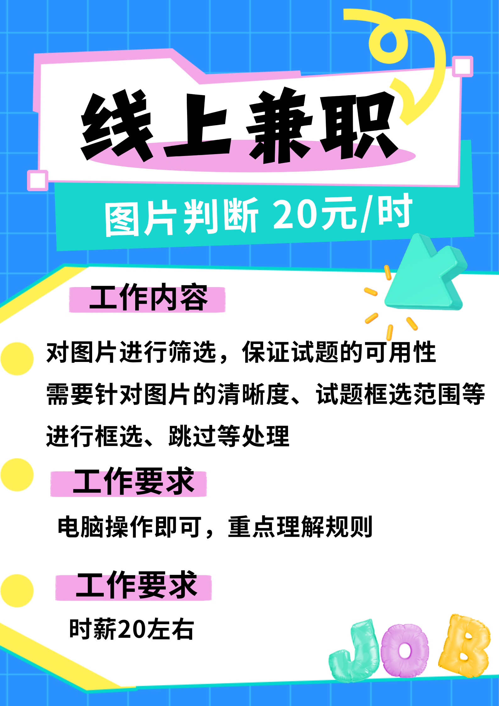 图片判断!线上兼职,20元左右时薪,内容简单~ | |