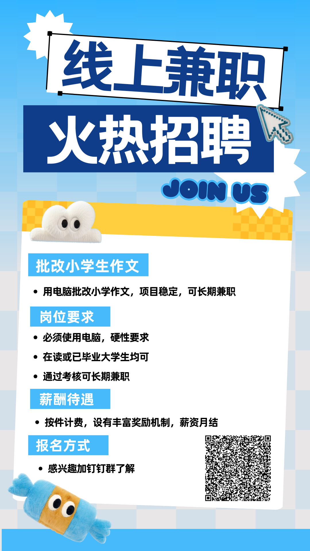 | 【招募最后7天!】线上批改小学生作文,项目稳定,可长期兼职! | |