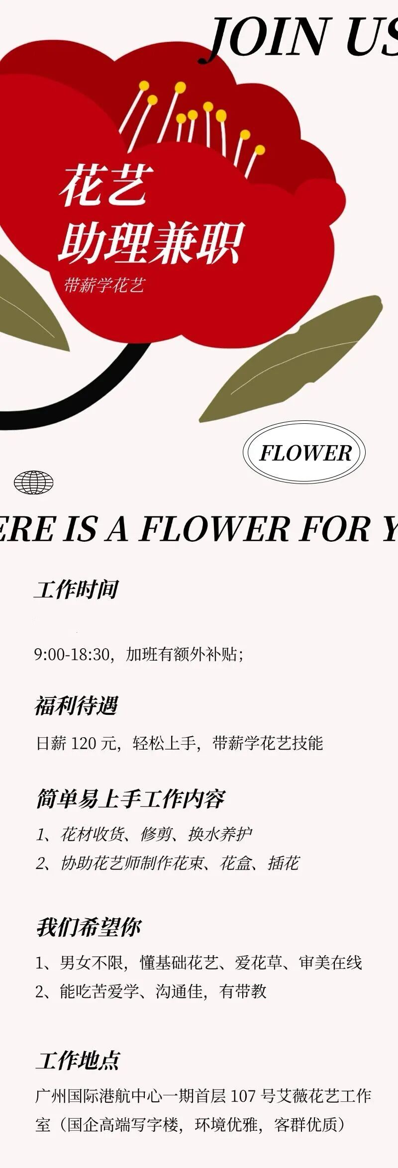| 花艺兼职--广州短期兼职来啦!日薪120,轻松又好玩,免费学插花啦~ |
